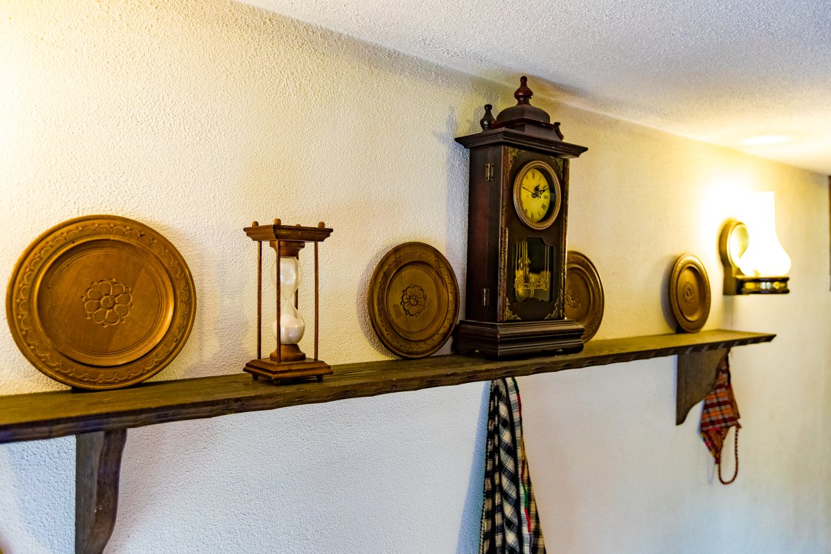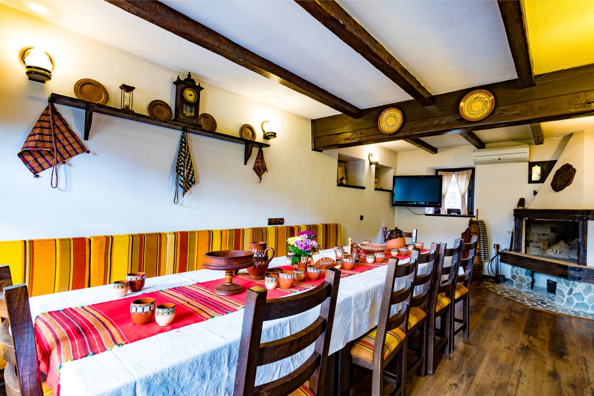 Механата е обзаведена с автентични мебели от масив и антикварни предмети и съдове пресъздаващи атмосферата на традиционния български бит.